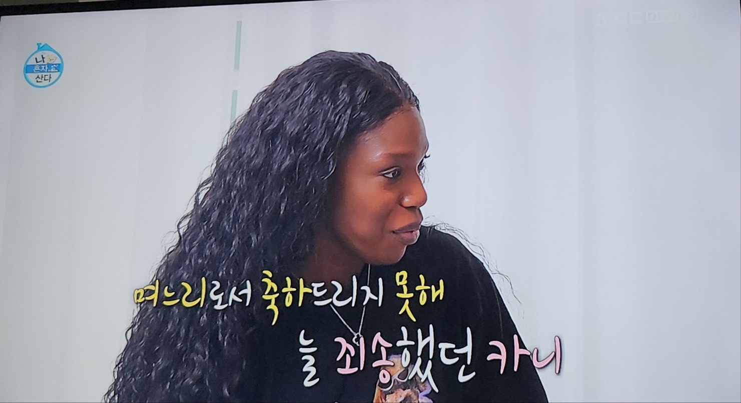 지난주에는 샤이니 키가 어딘가로 온갖 요리도구를 싸들고 이동하면서 만나게 된 주인공이 바로 제가 오늘 이야기하고 싶은 사람입니다. 알고 보니 굉장히 유명한 사람이더만요. 마이클잭슨을 비롯해서 비욘세 등 유명 아티스트들과 어깨를 나란히 하며 함께 일했던 안무가 카니예요. 카니는 외국에서 일하고 결혼하면서 주거지를 한국으로 옮겨서 살고 있는데요. 한국인 남성과 결혼한 신혼이랍니다. 샤이니의 시상식 무대 디렉팅 때문에 환갑을 맞이한 시어머니를 찾아뵙지 못한 미안함이 있었던 터라 그 마음을 알고 키가 요리를 하려고 카니집에 방문한 거였어요.